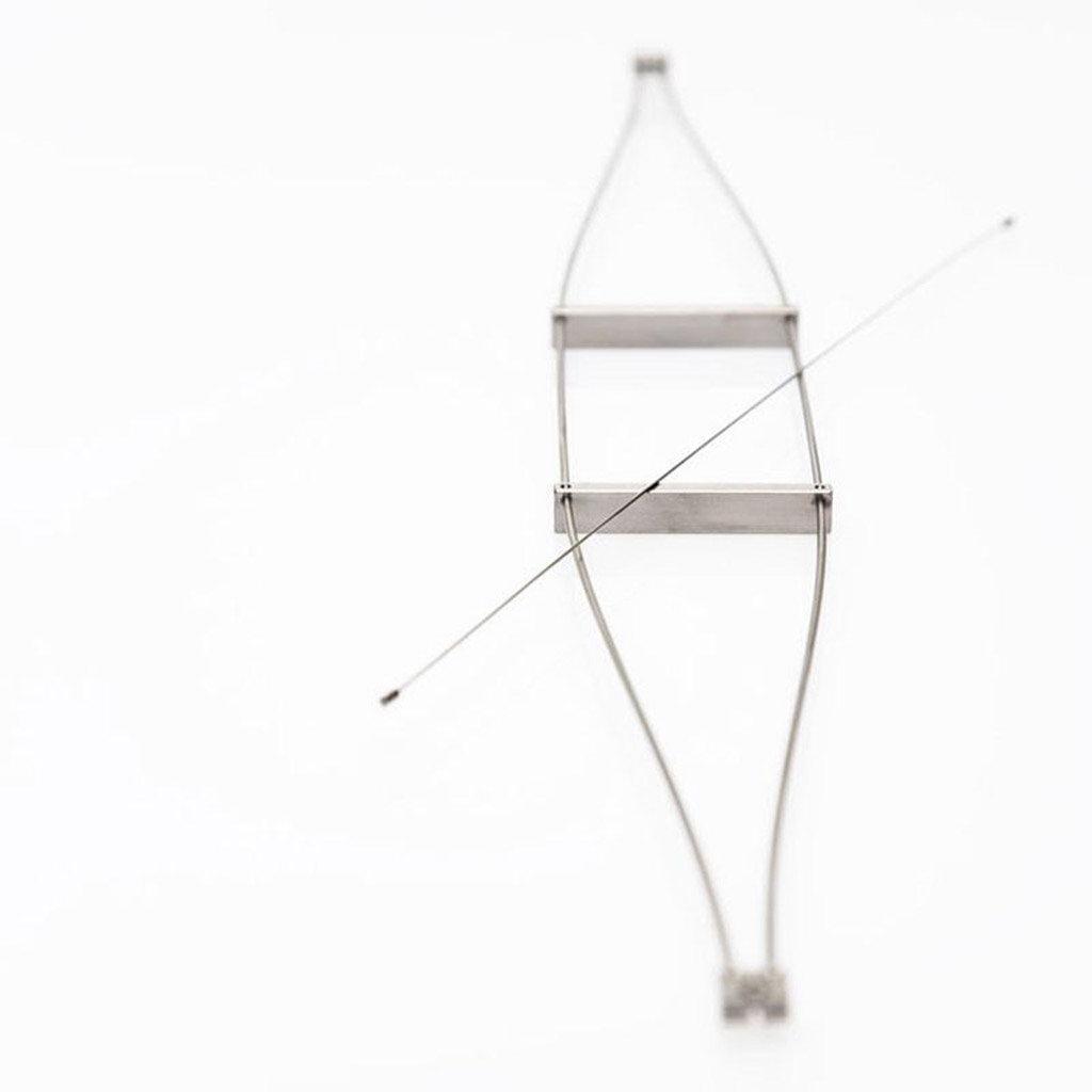 This suspension piece allows food to move naturally while elevated above the table. Perfect for small courses where accentuating lightness and translucency is desirable.