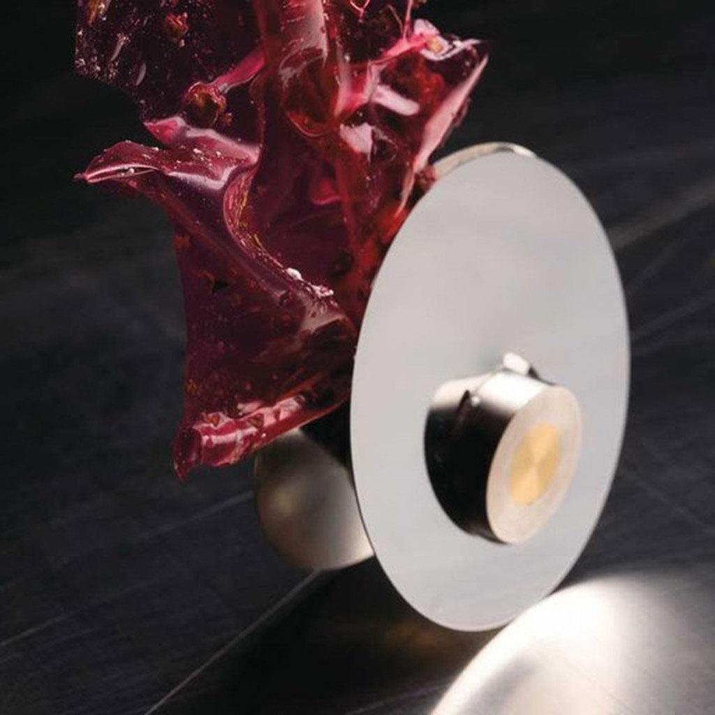 Поворачивающийся зажим из нержавеющей стали придает блюду движение, в него возможно разместить набор карточек или любой другой предмет.